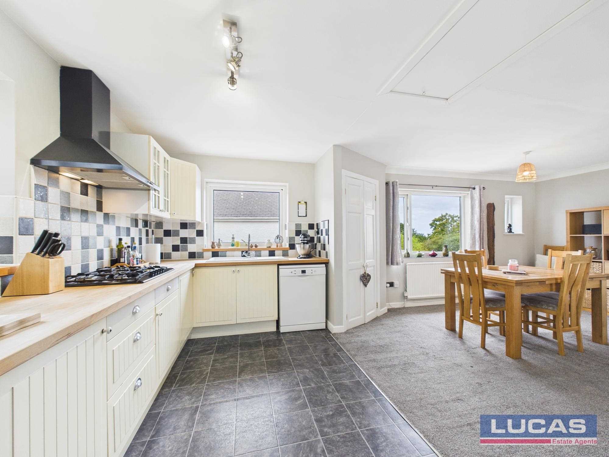 The first floor comprises a very spacious open plan kitchen/diner with the dining area including a built in storage cupboard, coved ceiling, small window to rear aspect, large picture window to rear aspect overlooking the garden together with glimpses of the mountains and Menai Strait, Slingsby style ladder to loft space, opening into the kitchen area with base and wall storage cupboards with complementary work surfaces, ceramic one and a half bowl sink with mixer tap, space for free standing dishwasher, space for free standing built under fridge and freezer, Neff extra wide gas hob with chimney style extractor over, Neff built in double oven with adjoining open shelving to side and above,complementary tiled splash back, window to side aspect, window to rear aspect. From the dining area a separate door takes you through into a very spacious living room with coved ceiling, transform window allowing additional light from the dining area, two windows to front aspect with pleasant views over the roof tops and trees.
