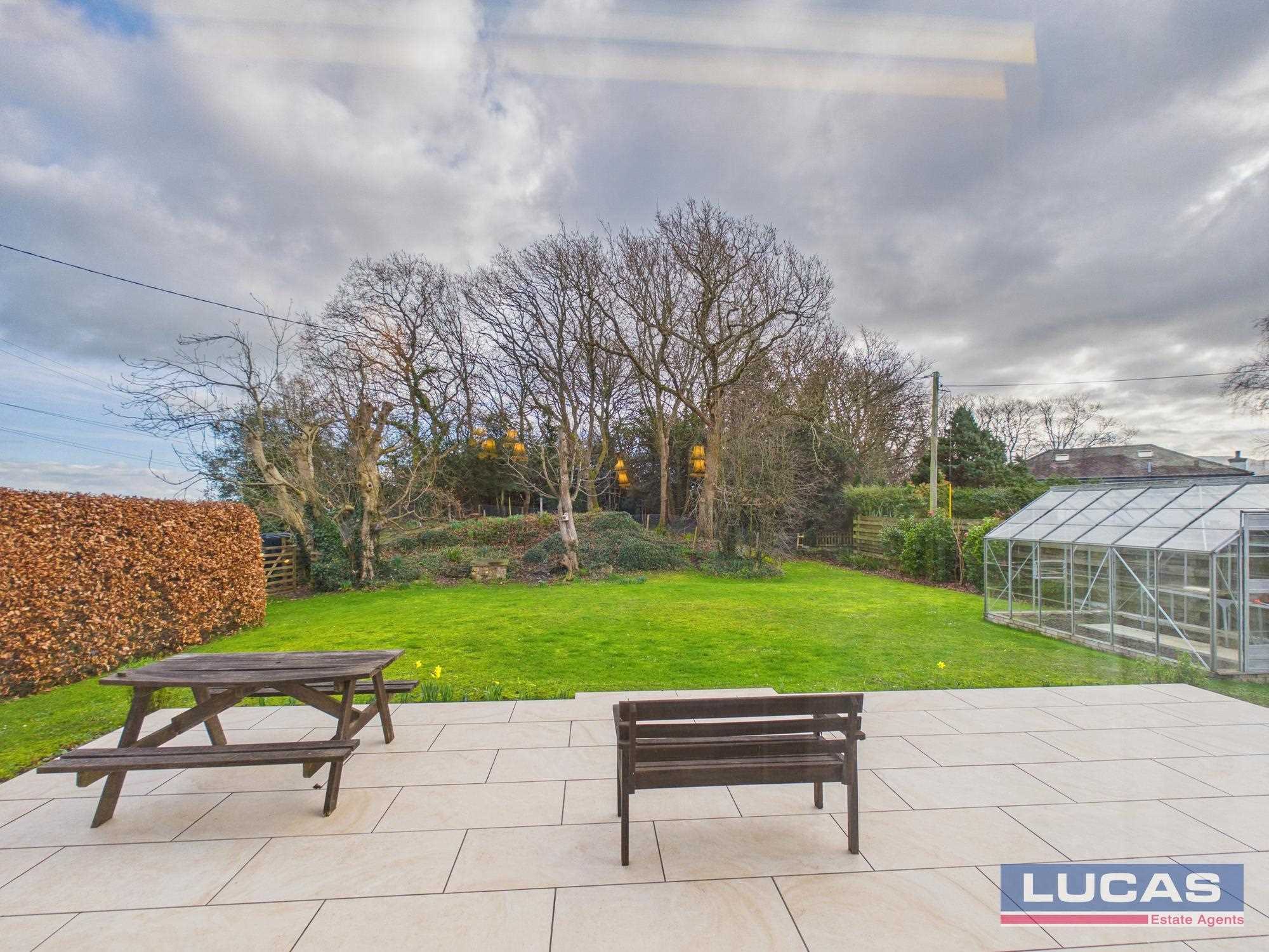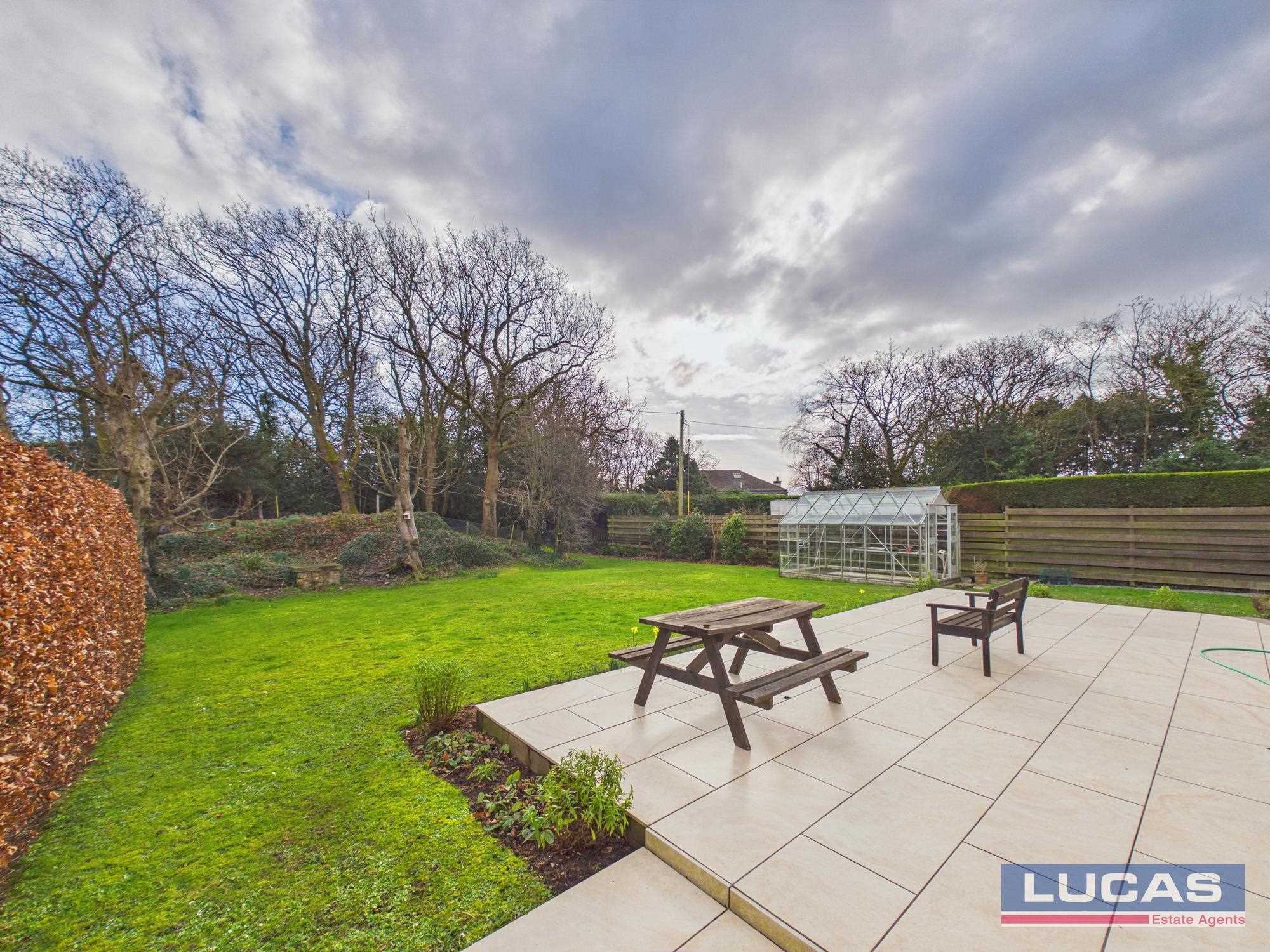 The rear garden is a true sanctuary, featuring a level lawn that backs onto a private woodland—a known habitat for rare red squirrels. A large stone-flagged patio provides a perfect spot for relaxation, while the addition of a greenhouse, a dedicated fruit and vegetable garden, and an attached double-glazed glasshouse/workshop makes this a paradise for gardening enthusiasts.
