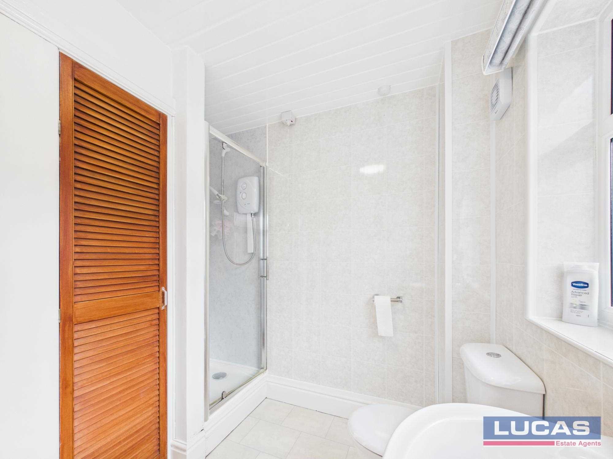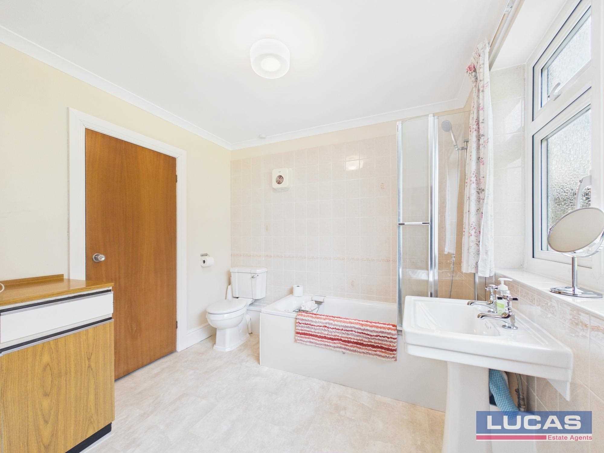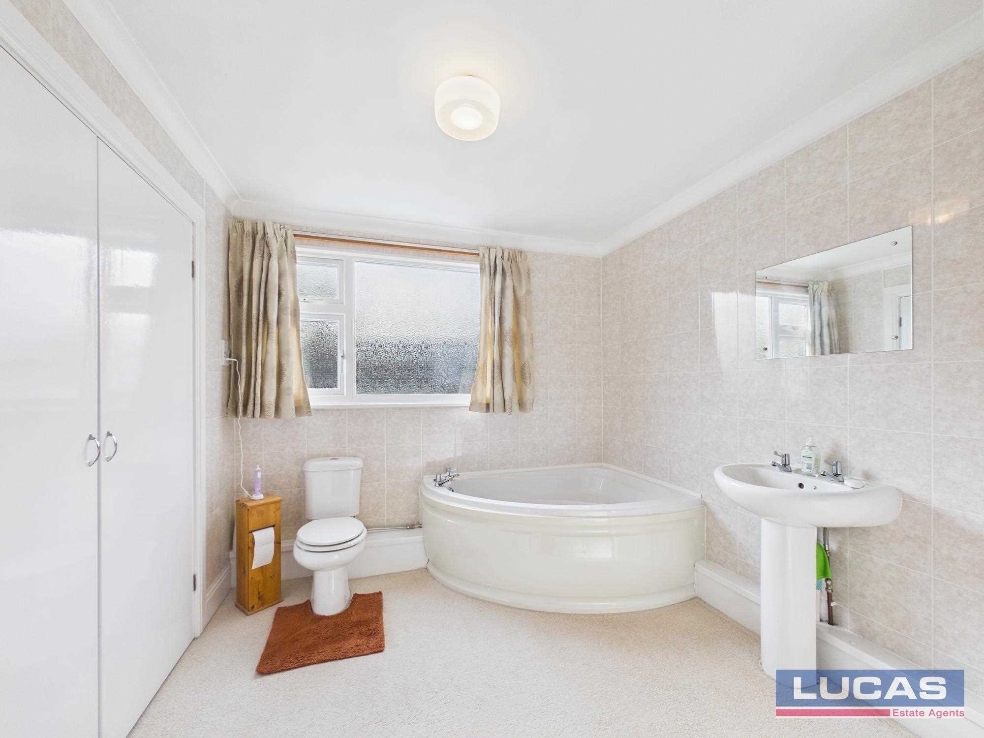 • The main family bathroom completes the upper floor, featuring a corner bath and a spacious double storage cupboard