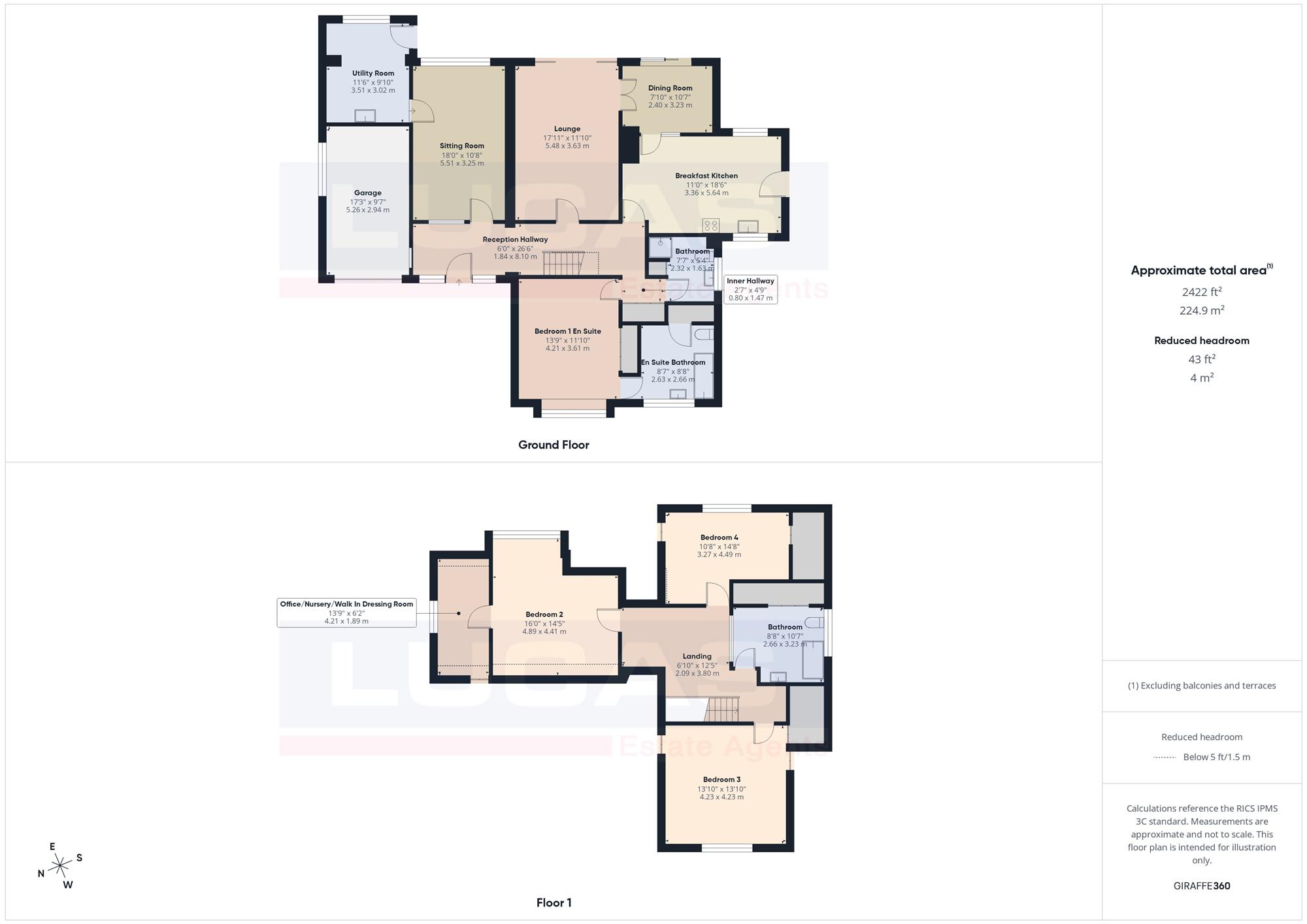 Thoughtfully designed for accessibility, the ground floor includes a large bedroom (currently utilised as an office) featuring built-in wardrobes and its own generous en-suite bathroom. A second, separate ground-floor shower room serves the rest of the level, ensuring ample facilities for guests or multi-generational living.