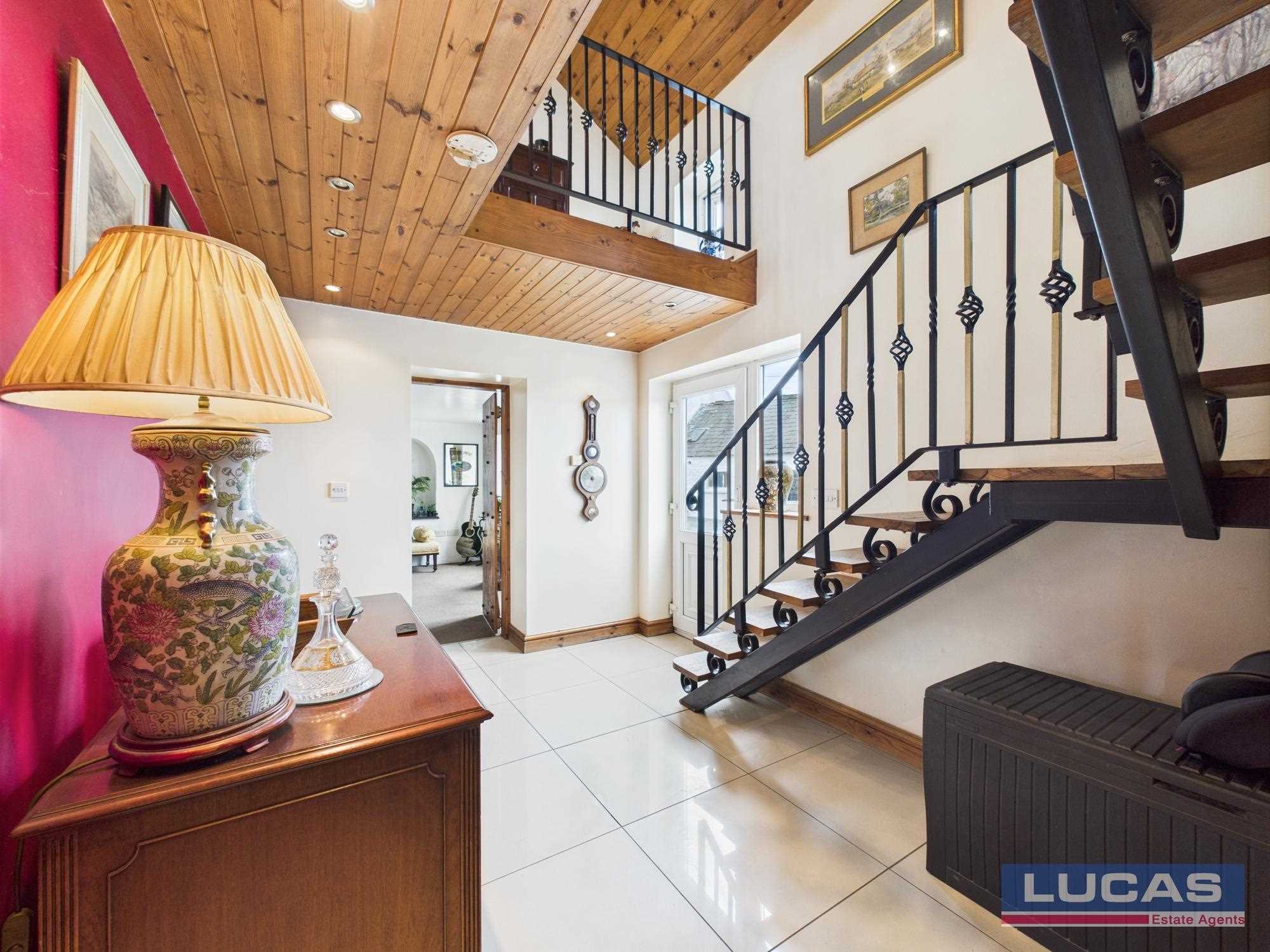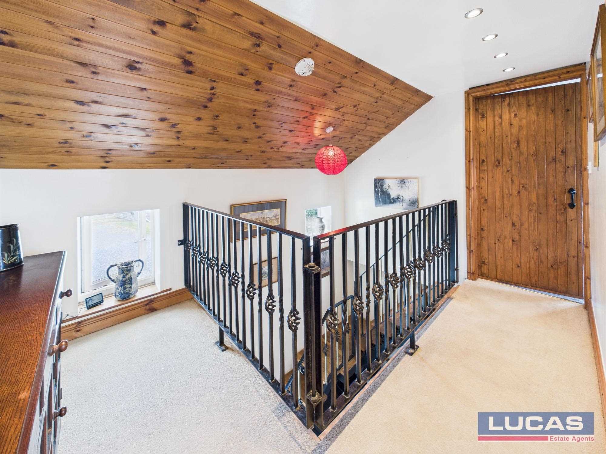 The first floor comprises an L shaped galleried landing with recessed lighting, complementary ballustrade,window to front aspect, doors off into the L shaped bedroom 3 with a low level window to front aspect, two windows to side aspect boasting views of the countryside along with distant mountain views and a Velux roof light, bedroom 4 with a Velux roof light.