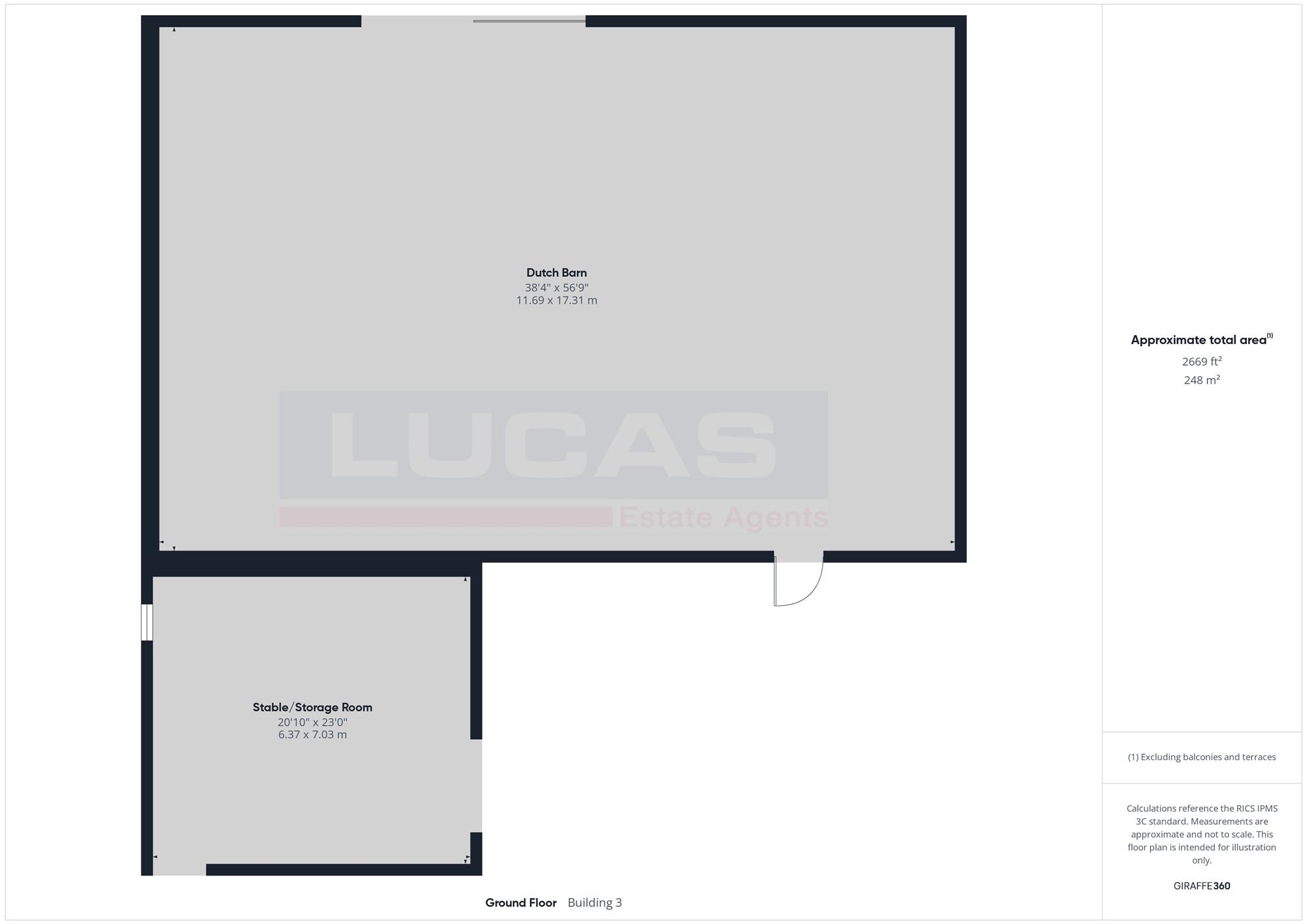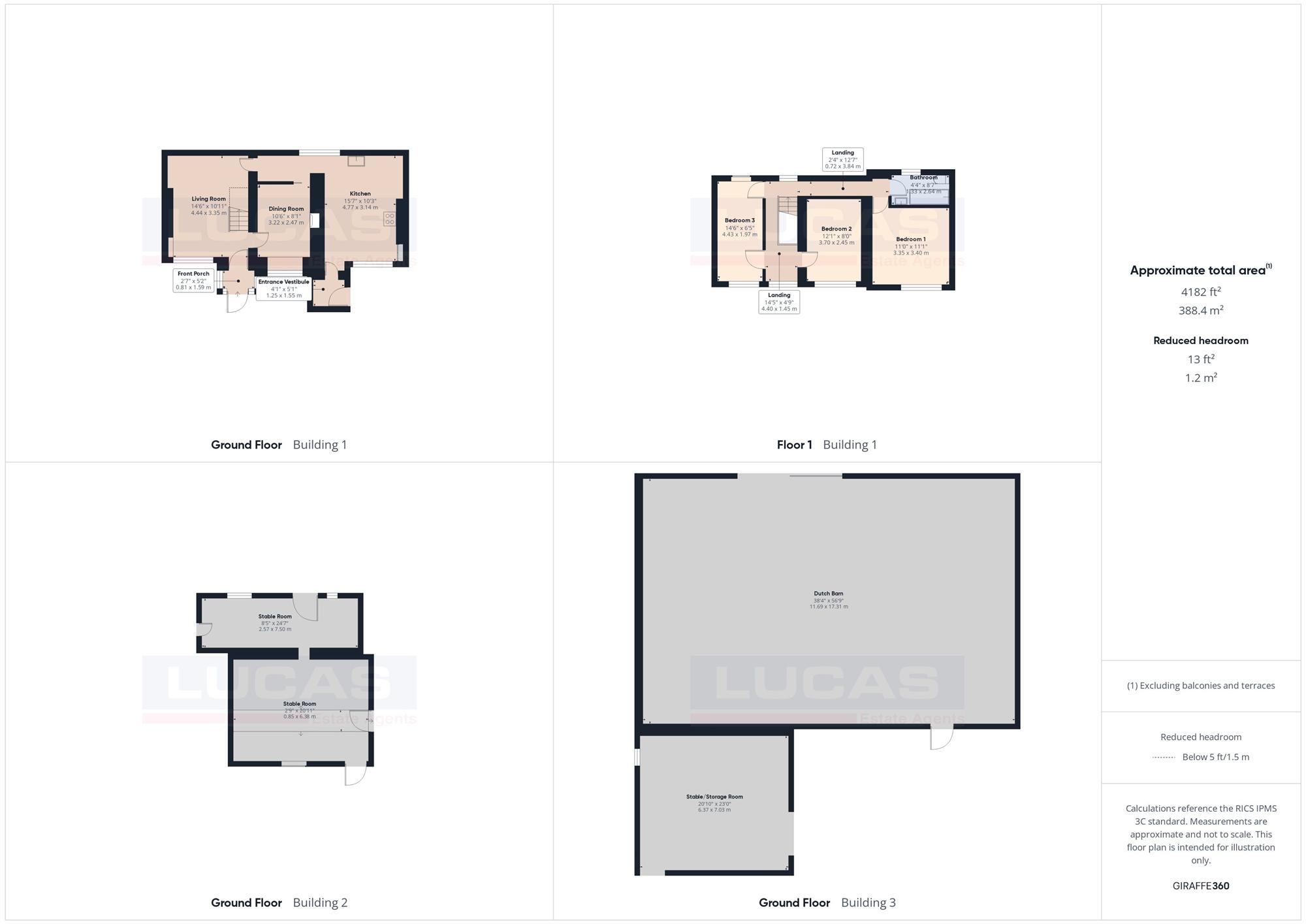 The enclosed rear courtyard area benefits from two galvanised gates leading onto the adjoining paddock along with the track and side and has onward access to a large Dutch barn 17.31m x 11.69m (56'9" x 38' 4") together with another stable room with 3 pens.