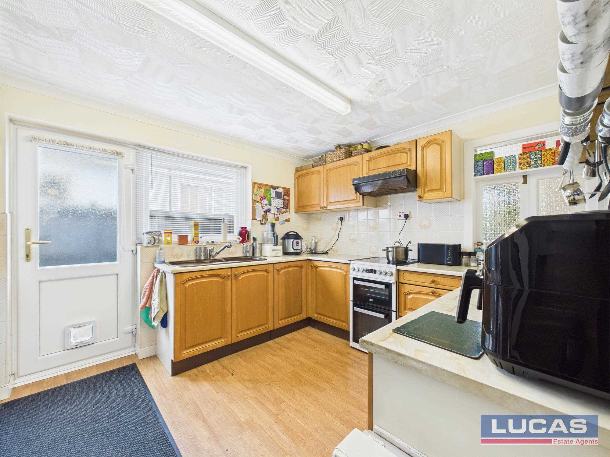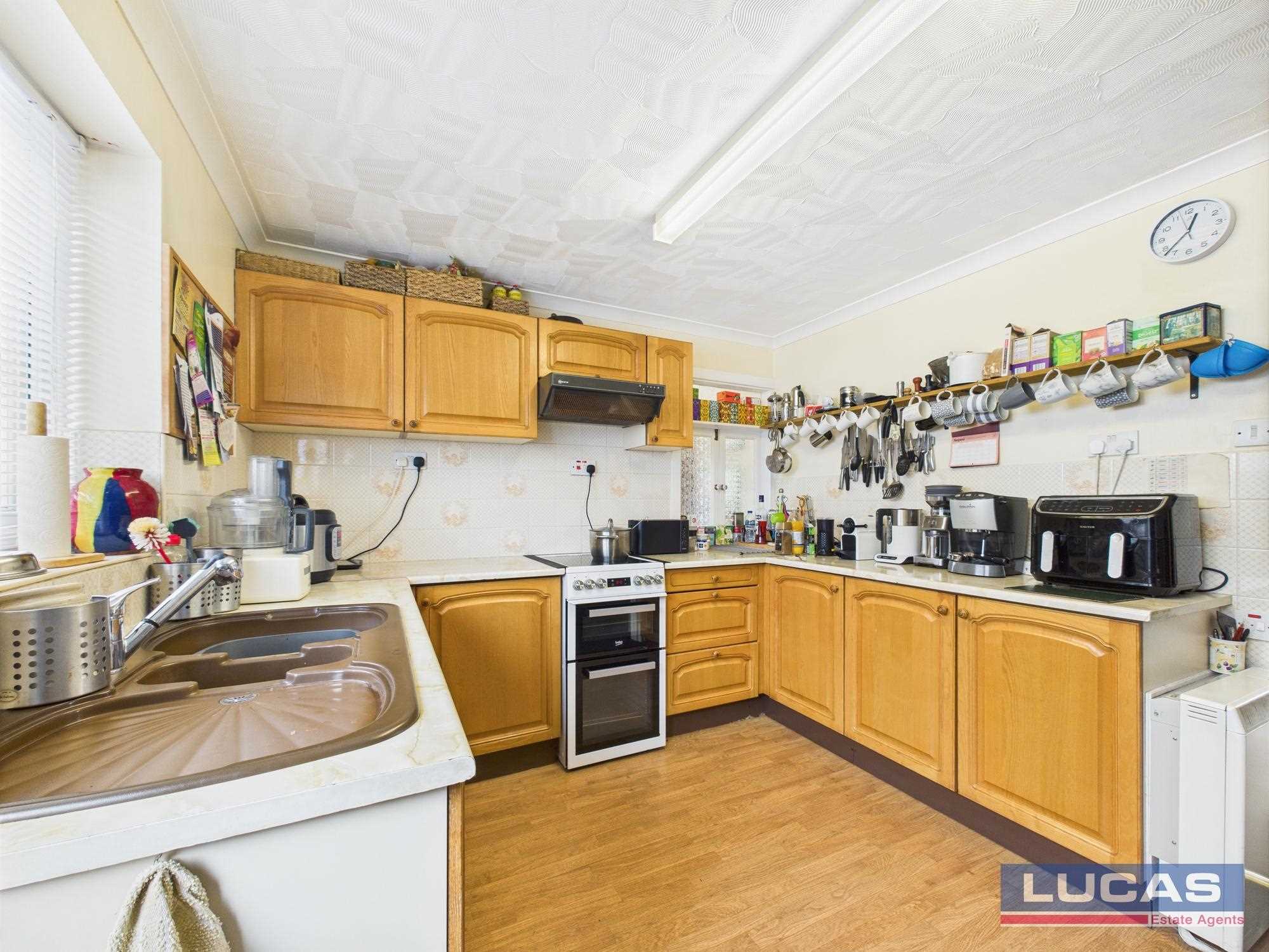 Continuing off the entrance hall are further doors leading off into the kitchen with base and wall storage cupboards with complementary work surfaces, space for free standing slot in electric cooker with extractor above, space for free standing washer, dryer and dishwasher with solid block worktop over, space for free standing American style fridge/freezer, coved ceiling low maintenance flooring, external door to side pathway with adjoining window to side aspect and serving hatch through to the dining room.